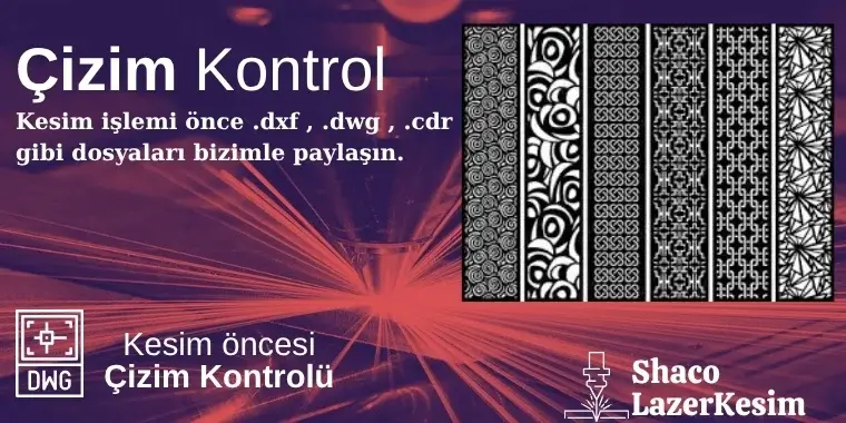 Lazer Kesim ; maksimum 5mm kalınlığı olan malzemeler için kesim yapmaktadır.. Lazer Makinemiz ile ahşap ve plastik grubunun kesim işlemlerini çapak ve pürüzsüz şekilde işlemekteyiz. Kesim hizmetlerinde 5 mm kalınlığı aşan ya da yanma yapacak malzemelerin kesimi için CNC Router Kesim önerilebilmektedir. Bu tür durumlar için operatörlerimizden bilgi alabilirsiniz.